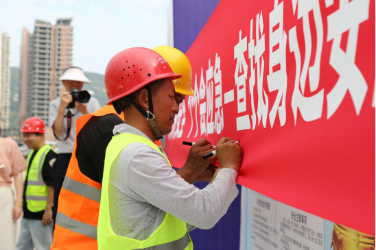 啟動(dòng)儀式上,公司黨總支副書記、總經(jīng)理馮皓代表業(yè)主單位致辭,宣布安全生產(chǎn)月活動(dòng)正式啟動(dòng)。馮皓強(qiáng)調(diào)安全生產(chǎn)對(duì)項(xiàng)目建設(shè)的重要性,要求全體人員將安全理念貫穿工作始終,積極參與各項(xiàng)安全活動(dòng)。并特別指出,張家河生態(tài)修復(fù)項(xiàng)目承載著改善區(qū)域生態(tài)環(huán)境、造福一方百姓的重要使命。作為項(xiàng)目業(yè)主,深知安全生產(chǎn)不僅是項(xiàng)目順利推進(jìn)的基石、守護(hù)建設(shè)者生命安全的防線,更是踐行社會(huì)責(zé)任、保障生態(tài)修復(fù)事業(yè)高質(zhì)量發(fā)展的核心要義。隨后,施工單位代表領(lǐng)誓,宣讀了《安全生產(chǎn)誓詞》。緊接著,參與人員在“安全生產(chǎn)月”主題橫幅上簽名,以莊重的形式明確自身安全責(zé)任。