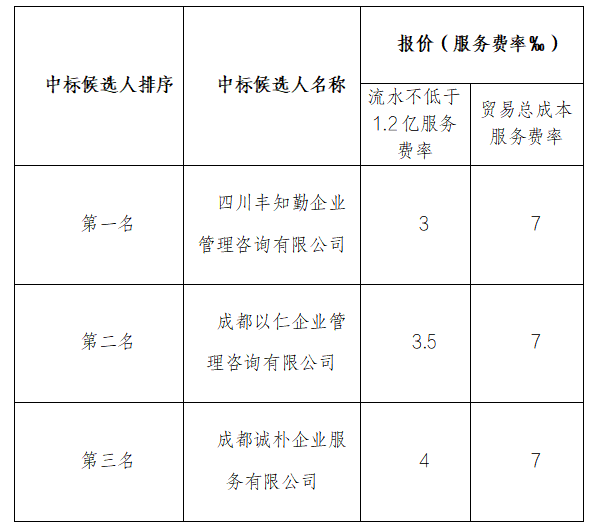 巴中俊佑工程項目管理有限公司融資咨詢服務(wù)采購項目詢價采購于2025年12月22日舉行,現(xiàn)將中標候選人名單公示如下:
